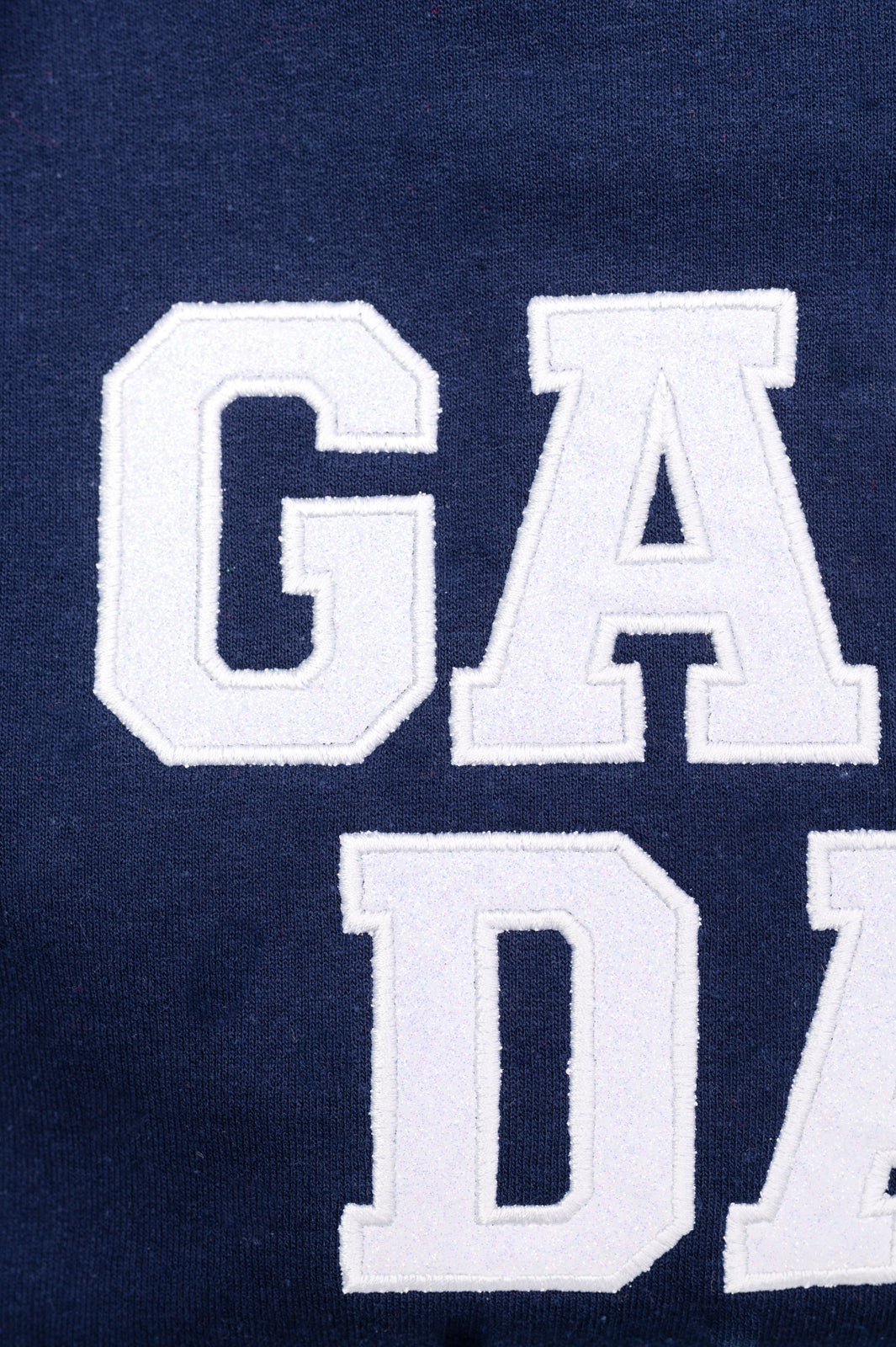 PREORDER: Embroidered Glitter Game Day Sweatshirt in Navy/White