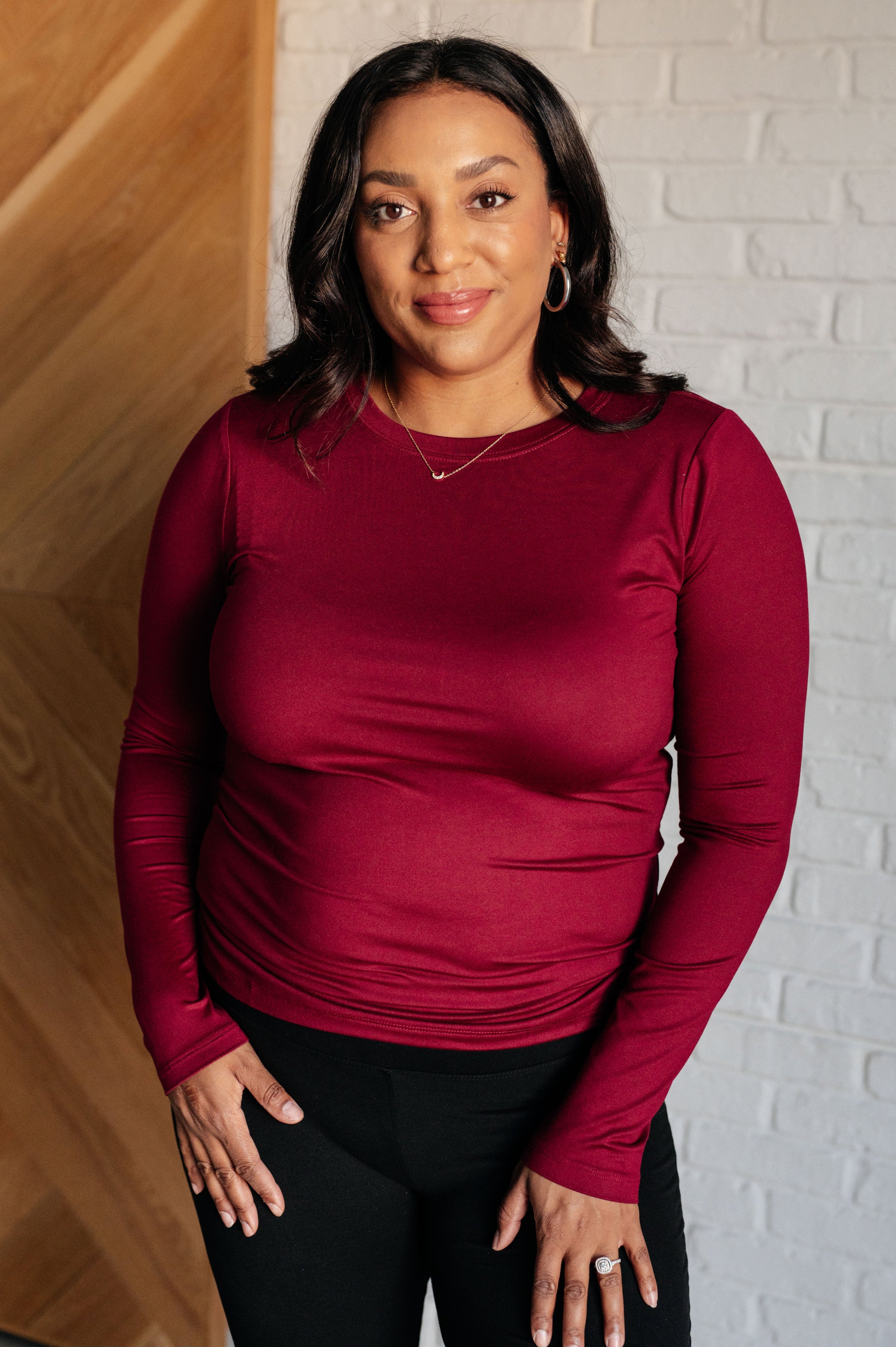 Feel flawless in our Basically Perfect Brushed Microfiber Tee. The soft brushed microfiber fabric hugs your curves, while accentuating your natural figure. The round neckline and long sleeves are perfect for layering. This form-fitting tee is basically perfect for any occasion.