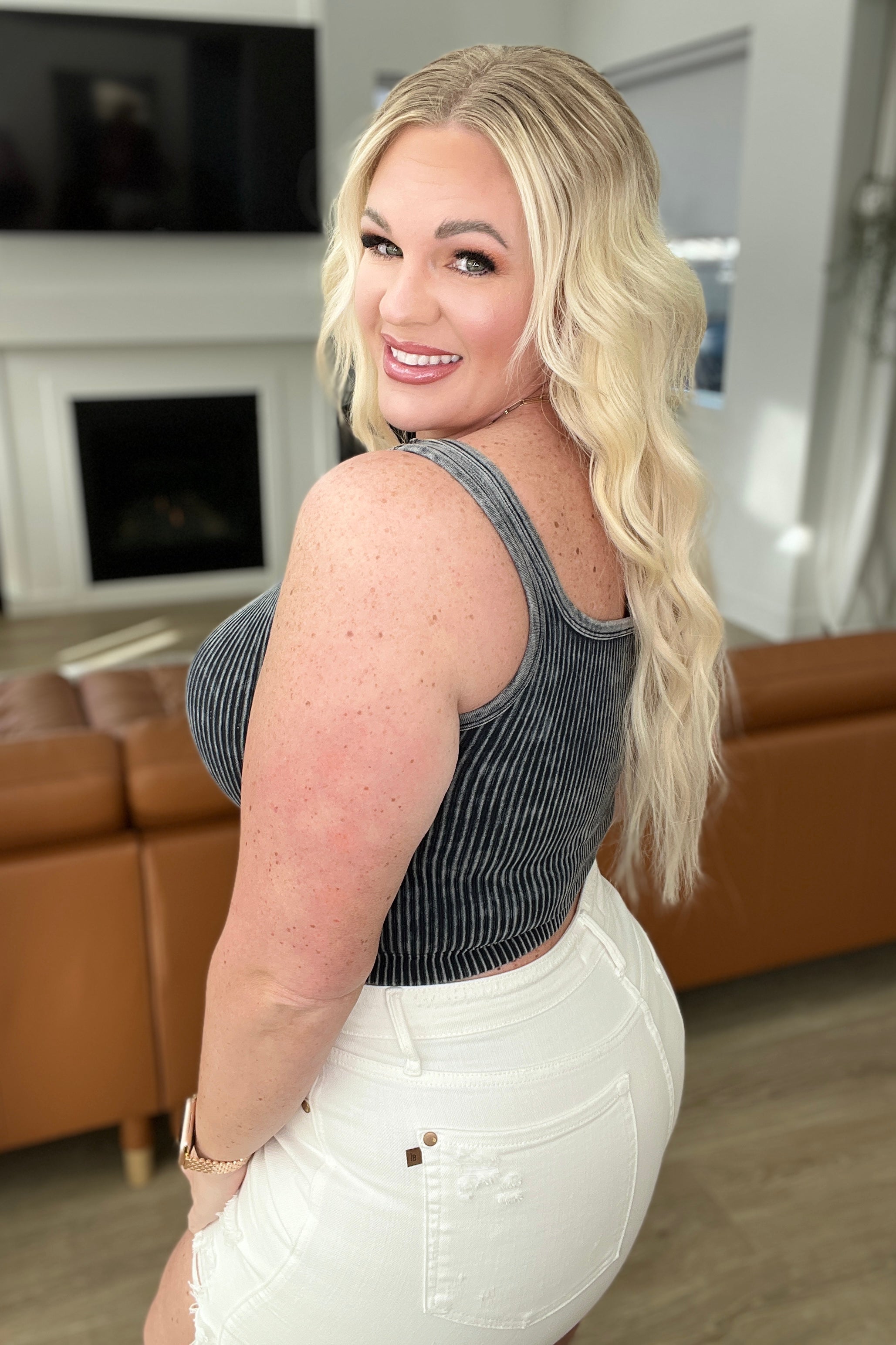 Effortless Reversible Mineral Wash Ribbed Tank in Ash Black
