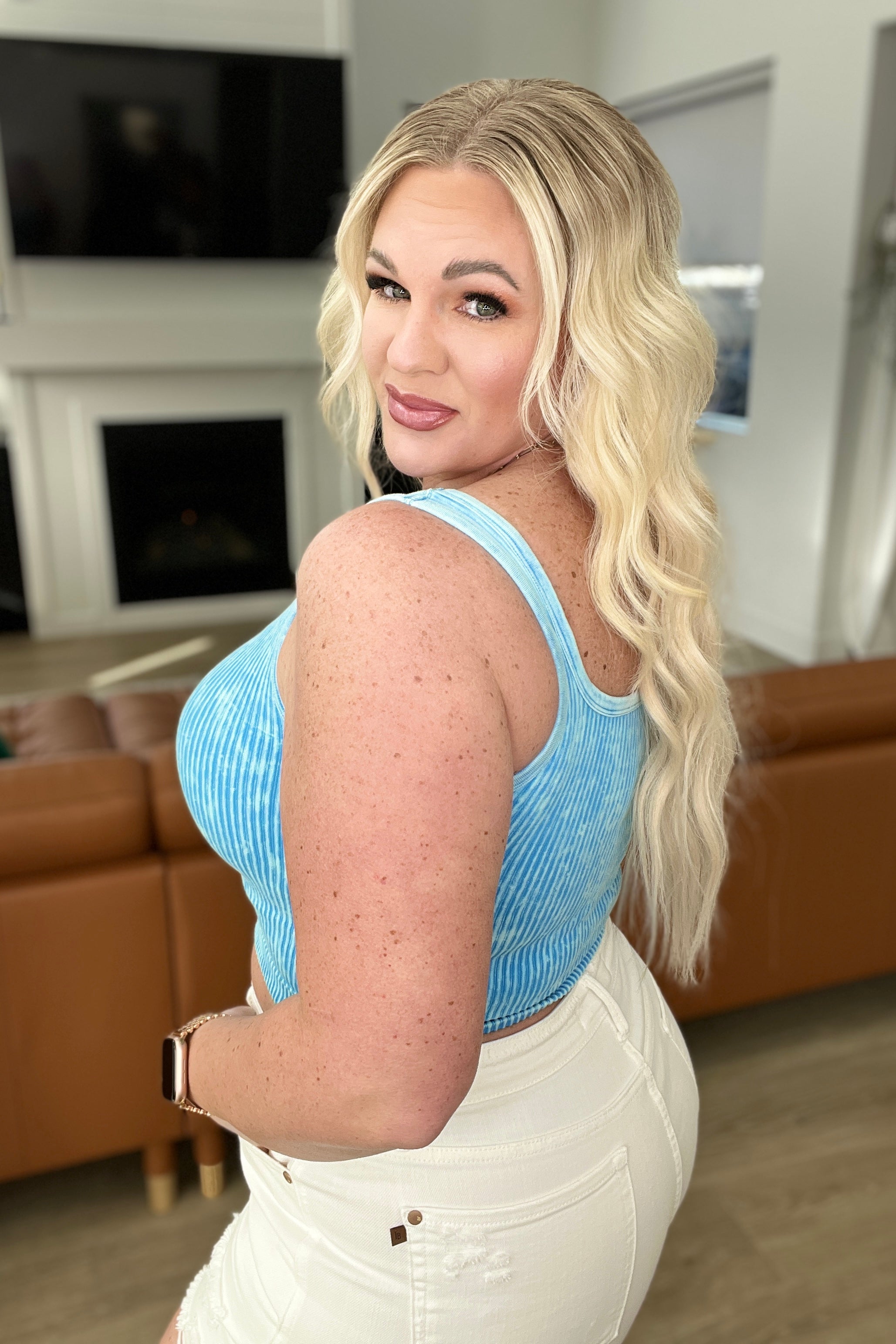 Effortless Reversible Mineral Wash Ribbed Tank in Deep Sky