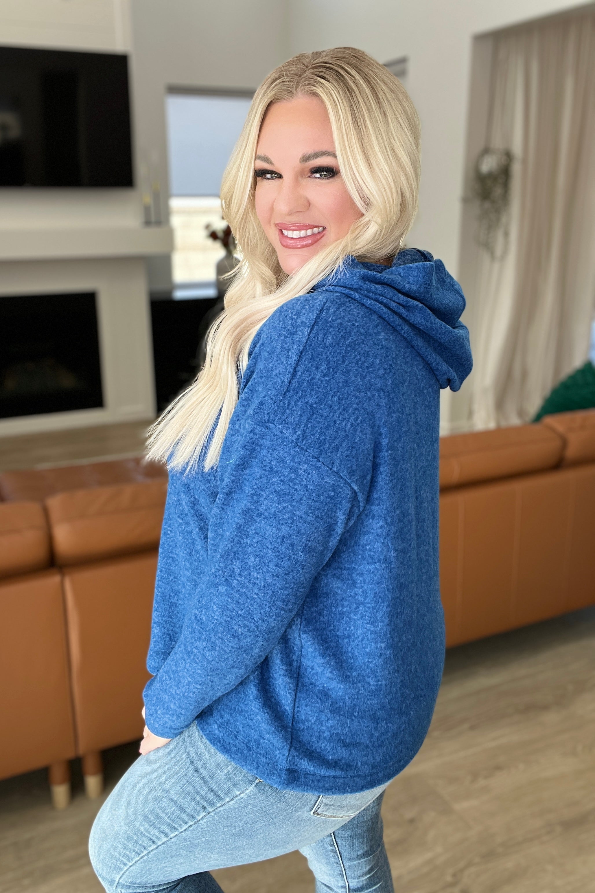 Hooded Melange Brushed Hacci Sweater in Light Navy