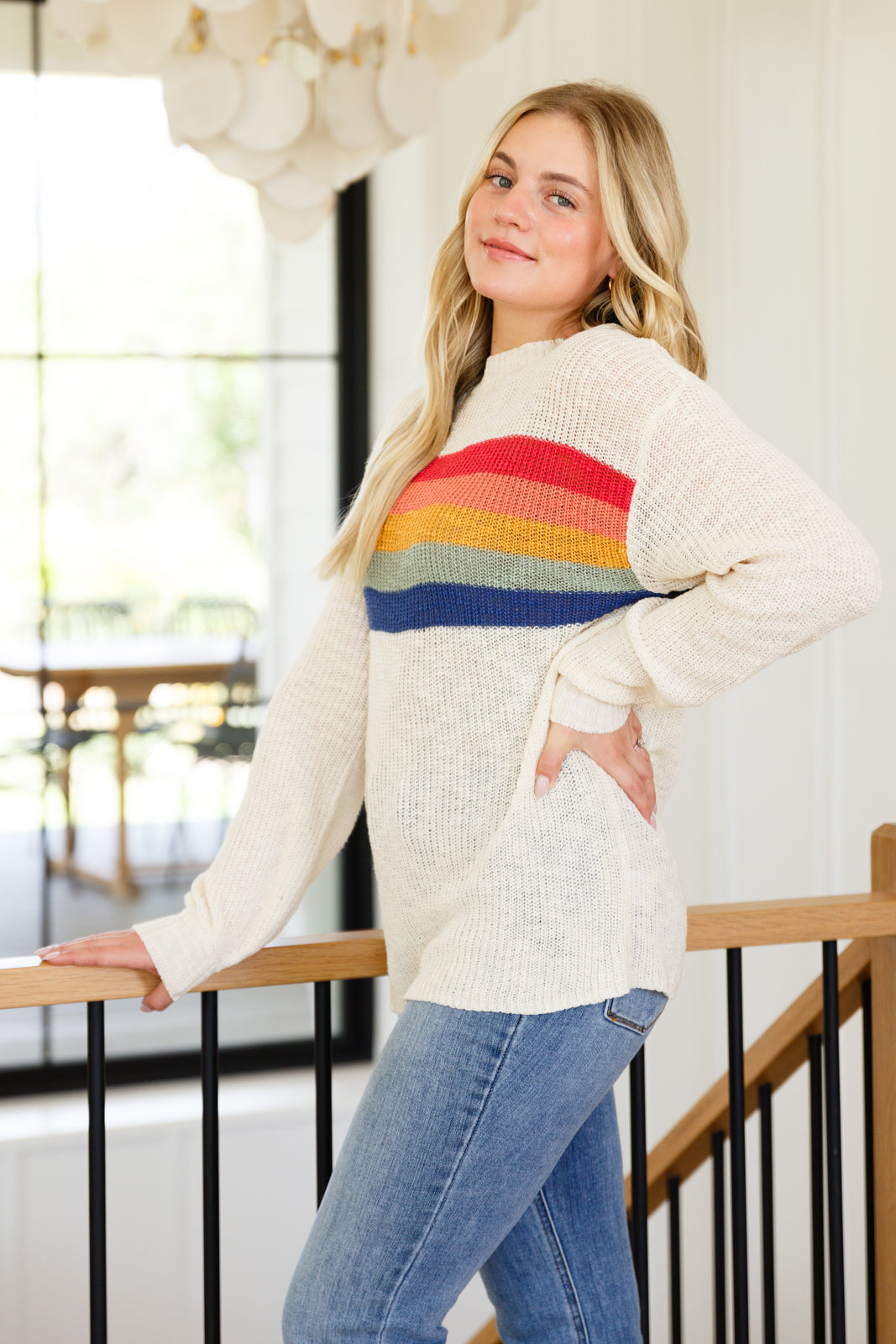 Snuggle into style with this Love That For Us Striped Sweater. Crafted from a lightweight slub sweater knit, this rainbow striped piece is the perfect easy transitional layer. Cozy warmth meets bold fashion - what's not to love?!
