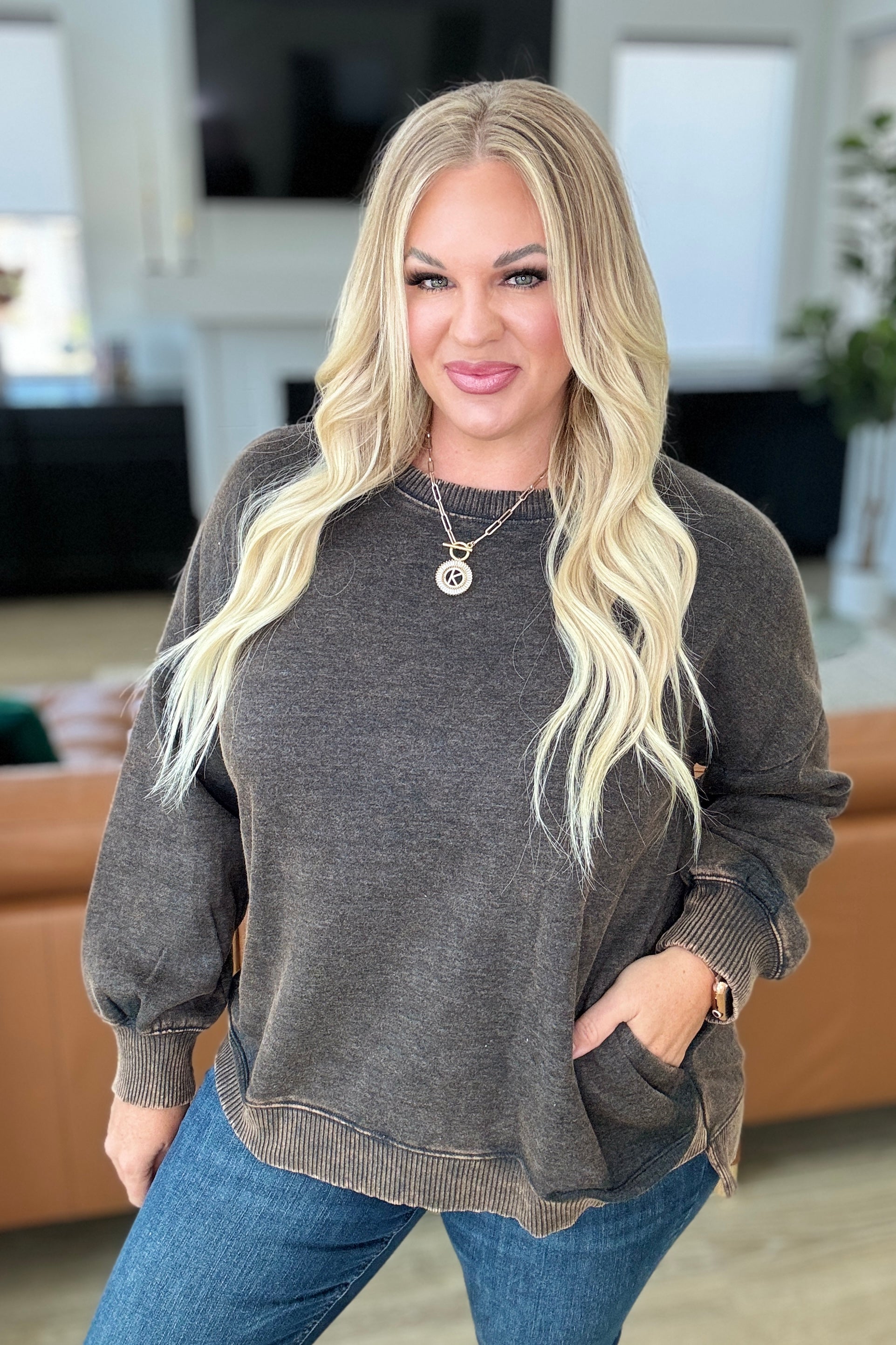 Elevate your casual style with our Mineral Wash Step Hem Sweatshirt! Made from soft fleece, it features a banded ribbed neckline and drop shoulder for a relaxed fit. The stepped hemline and functional side pockets add utility and style. Try it in Ash Black for a timeless look.