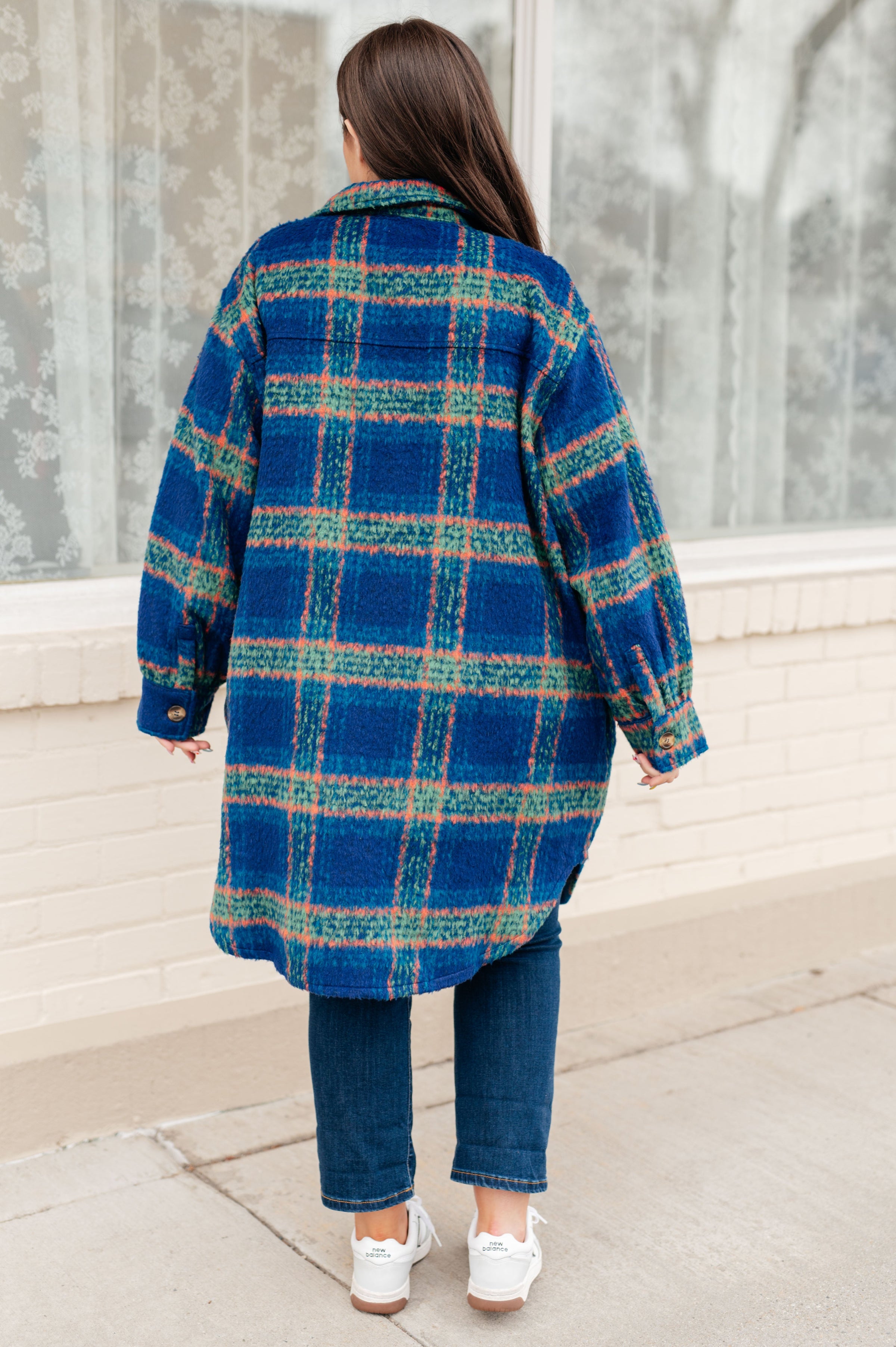 Stay warm and stylish with our No Tears Plaid Coat. Made from mid weight brushed flannel, this coat is perfect for chilly weather. The button front and scooped hem add a touch of sophistication, while the large scale plaid pattern makes a statement.
