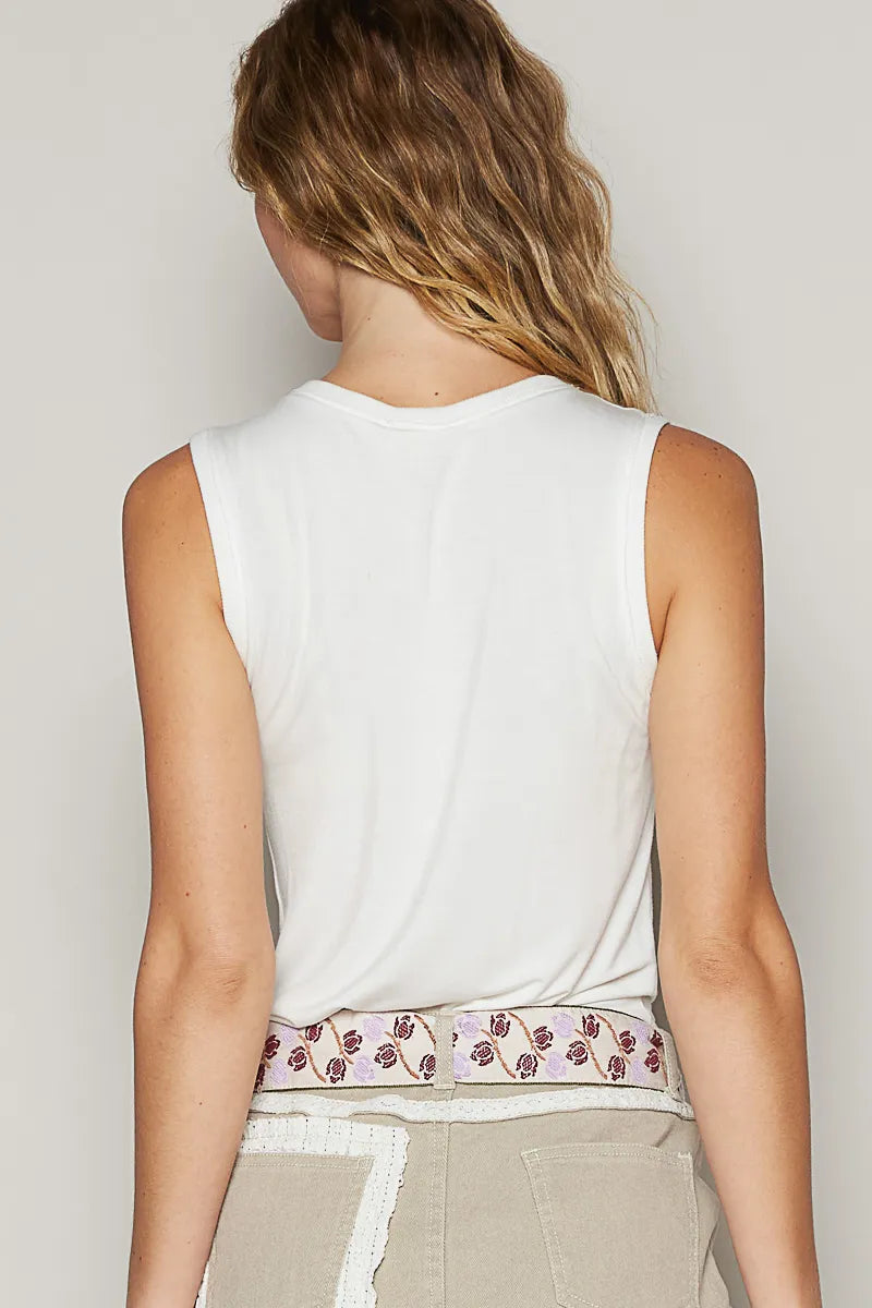 This sleeveless ribbed tank top features a classic button-front placket design with a fitted silhouette perfect for casual wear. Made from soft, stretchy ribbed cotton blend material that provides comfort and breathability. The crew neckline and armhole cut offer a flattering fit while the button details add a refined touch to this versatile wardrobe staple. Ideal for layering or wearing alone, this tank combines comfort with style for everyday occasions.