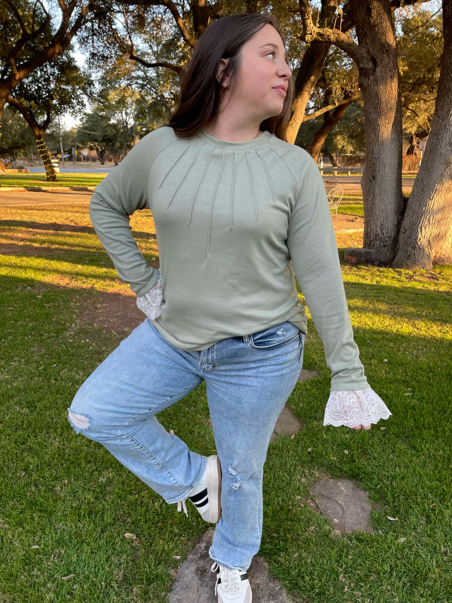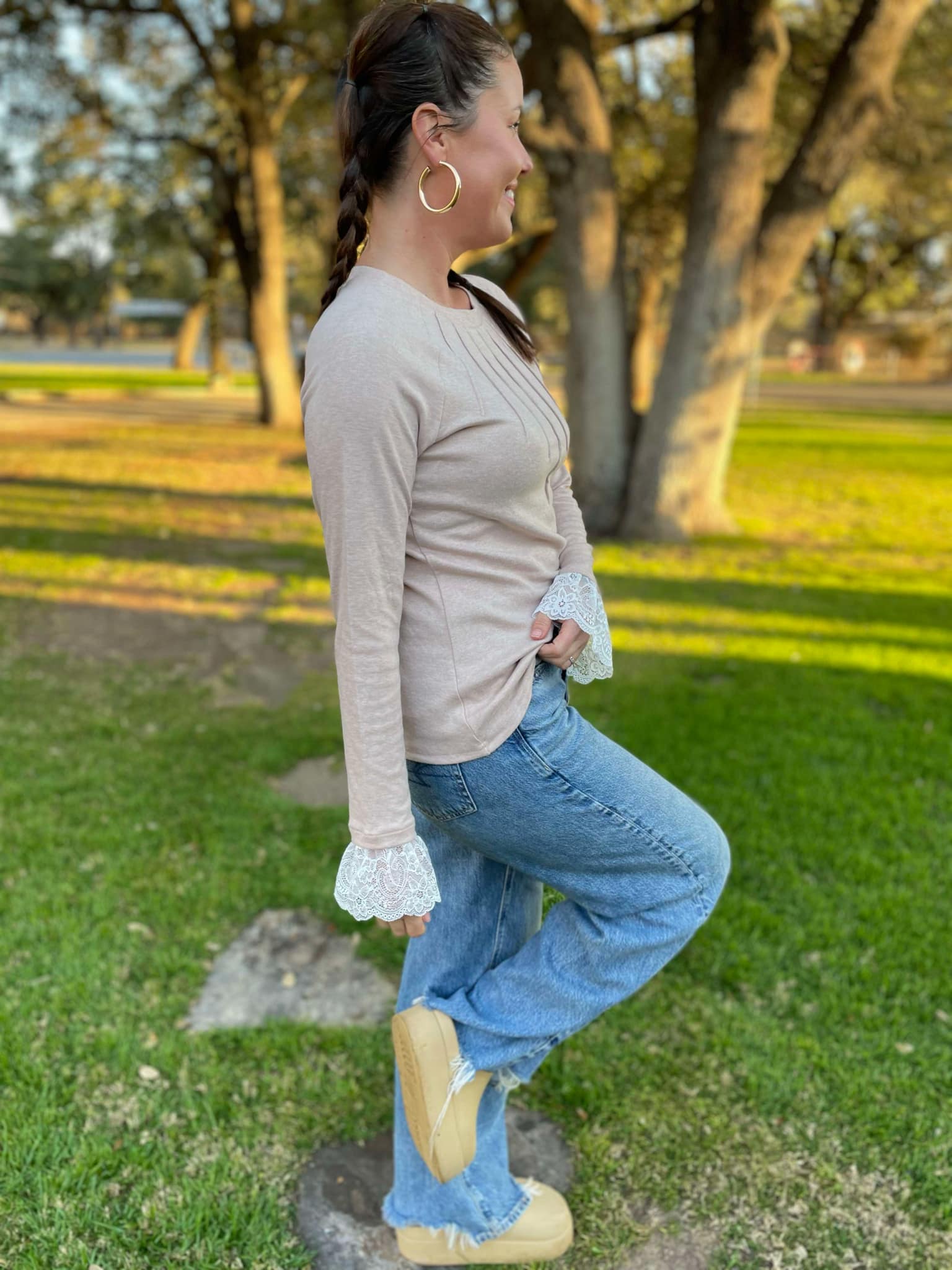 PREORDER: Beauty In The Details Lace Cuff Top in Two Colors