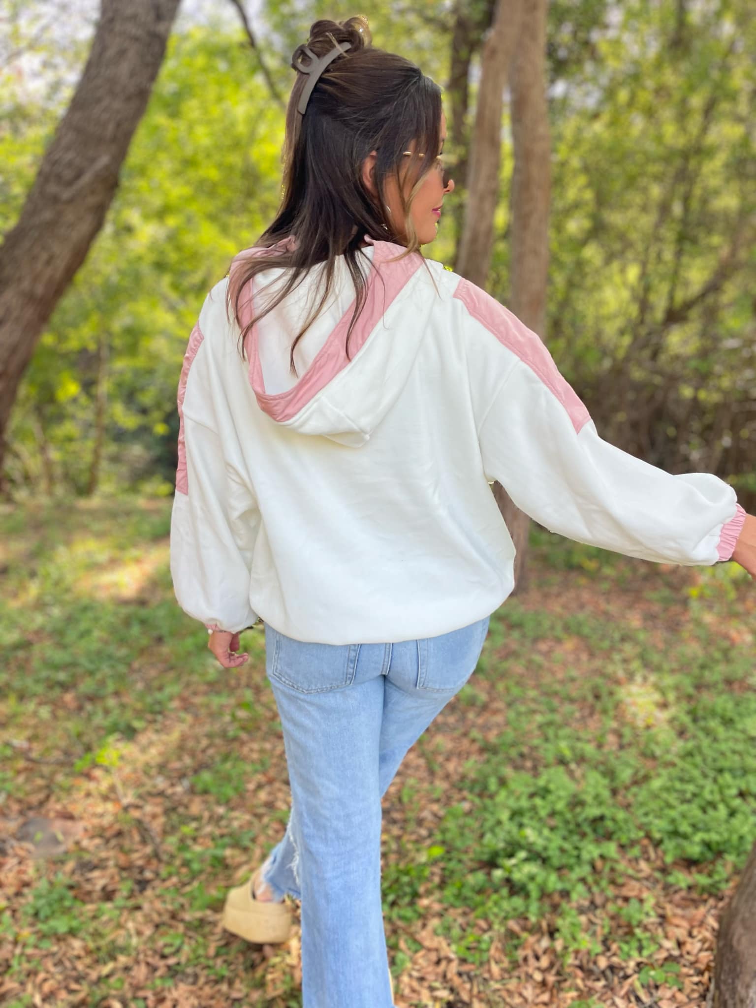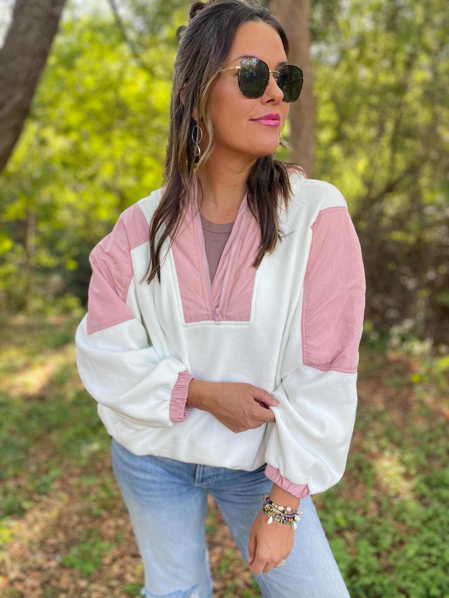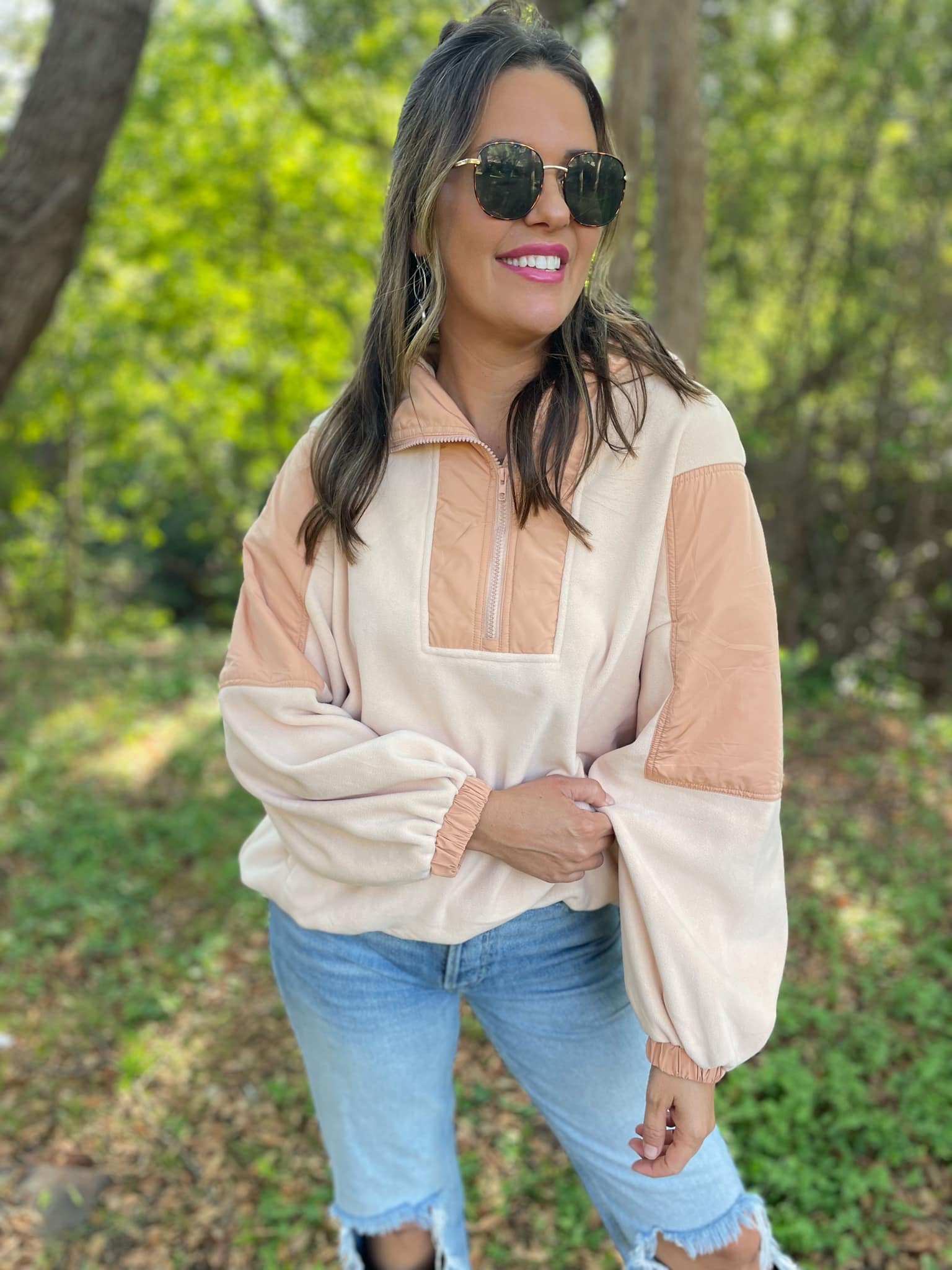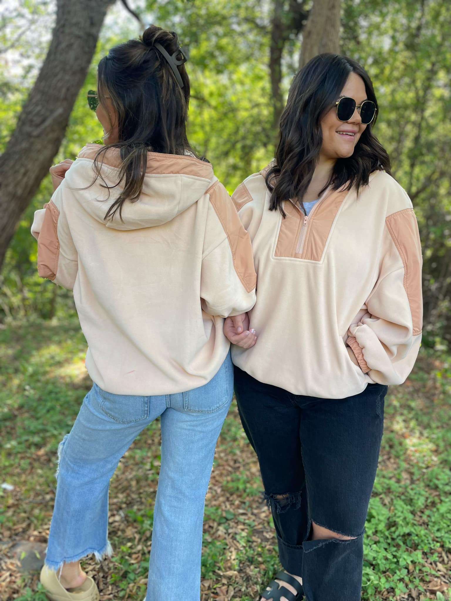 You can never have too many fleece jackets and the half zip + oversized hood makes this one a MUST! Super soft with a roomy fit and contrasting accent details.