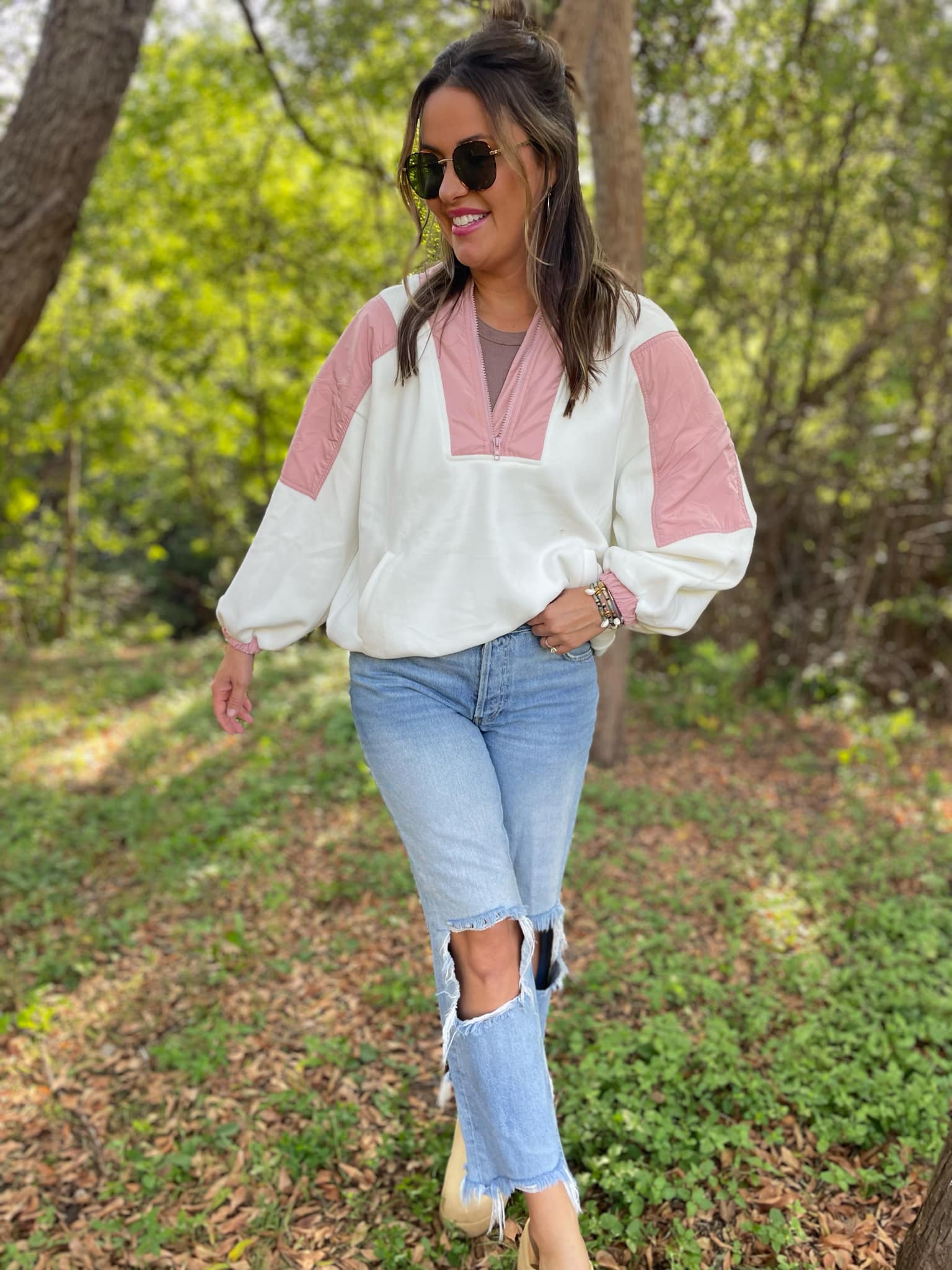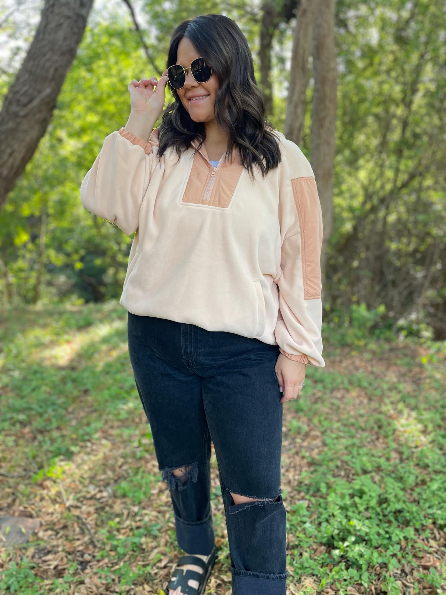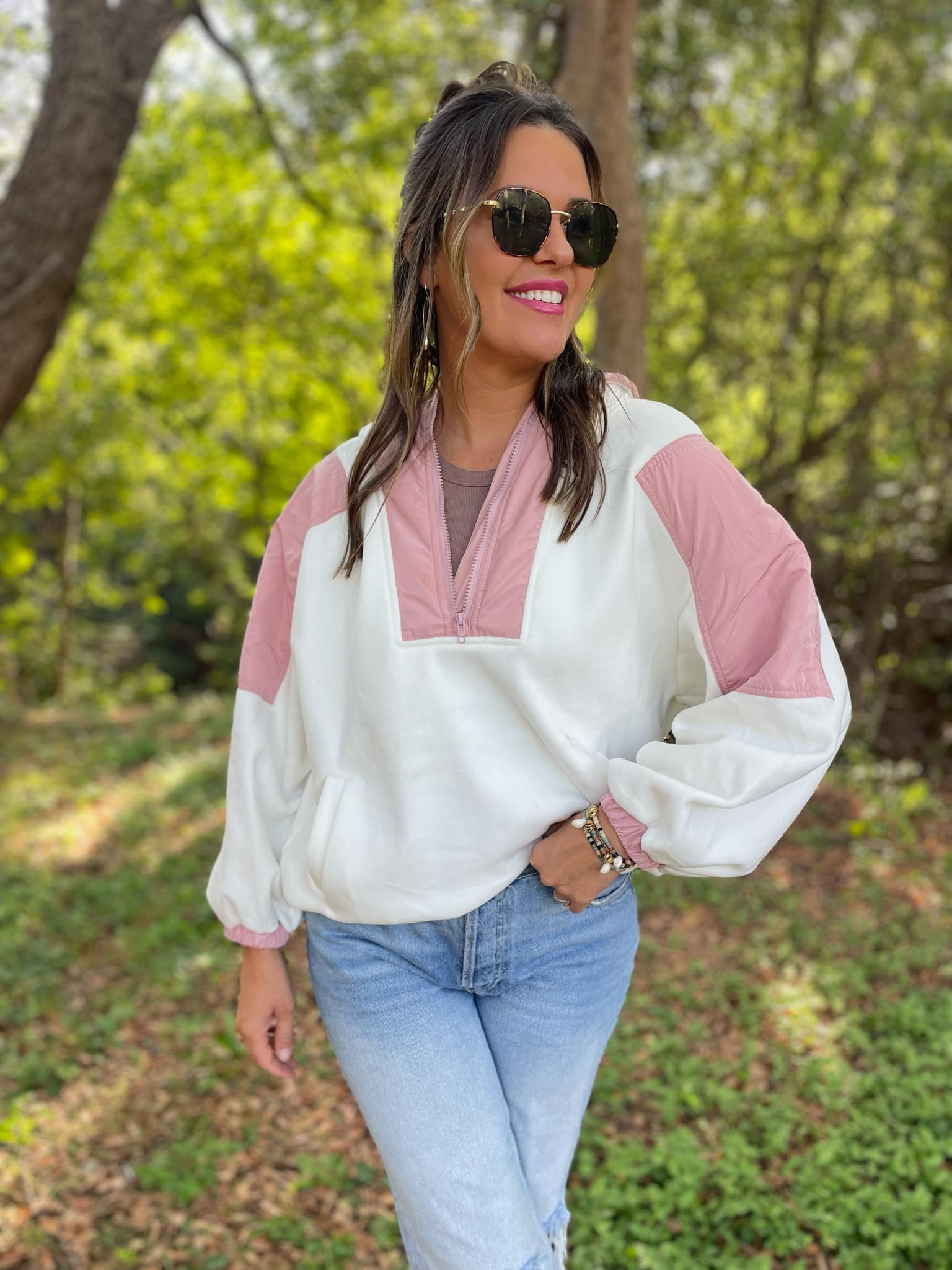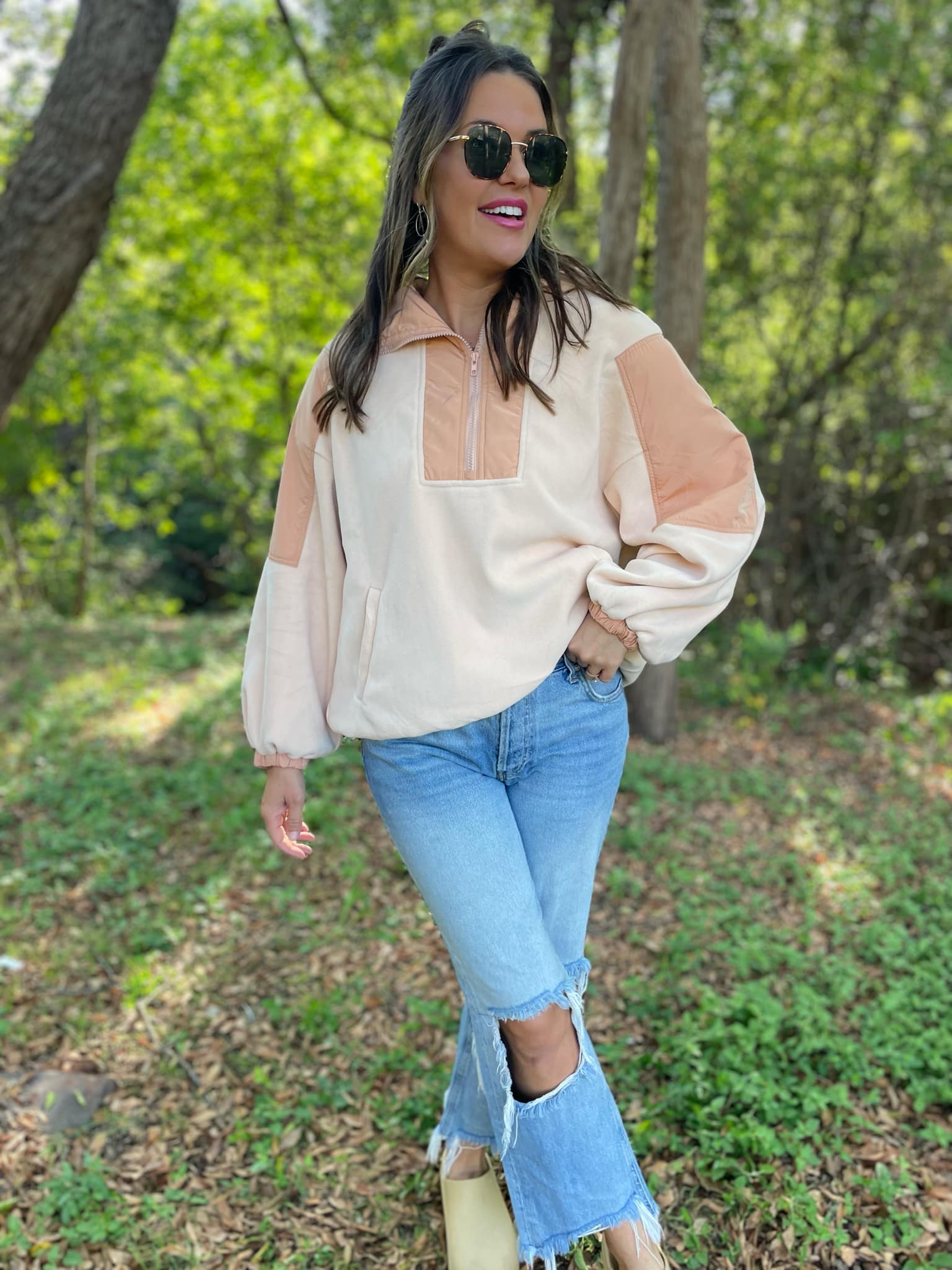 You can never have too many fleece jackets and the half zip + oversized hood makes this one a MUST! Super soft with a roomy fit and contrasting accent details.