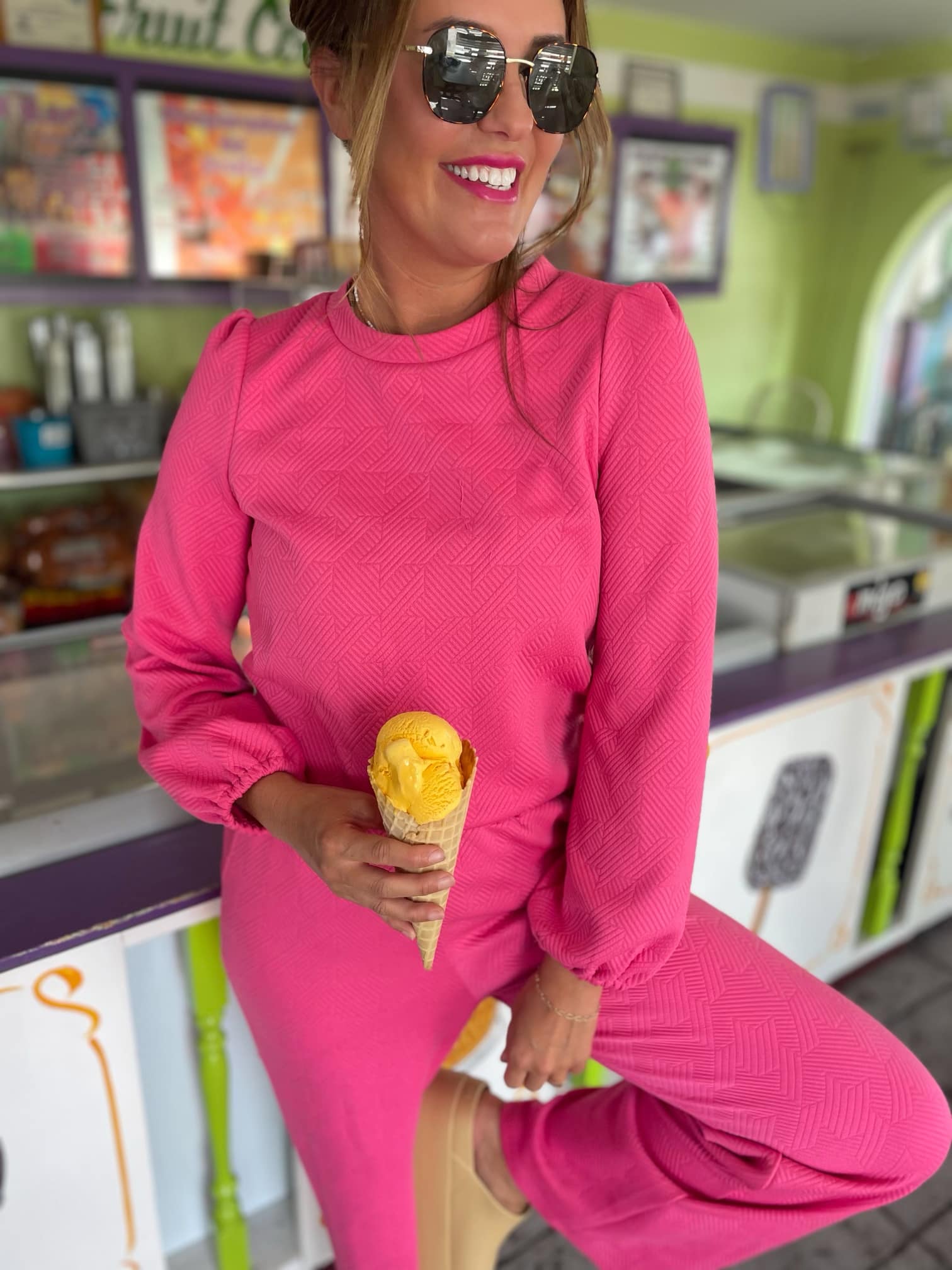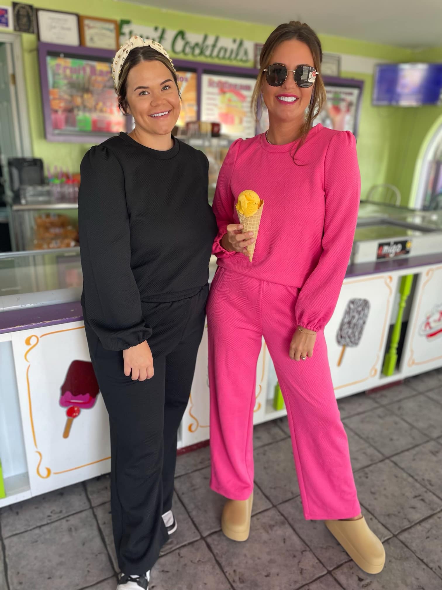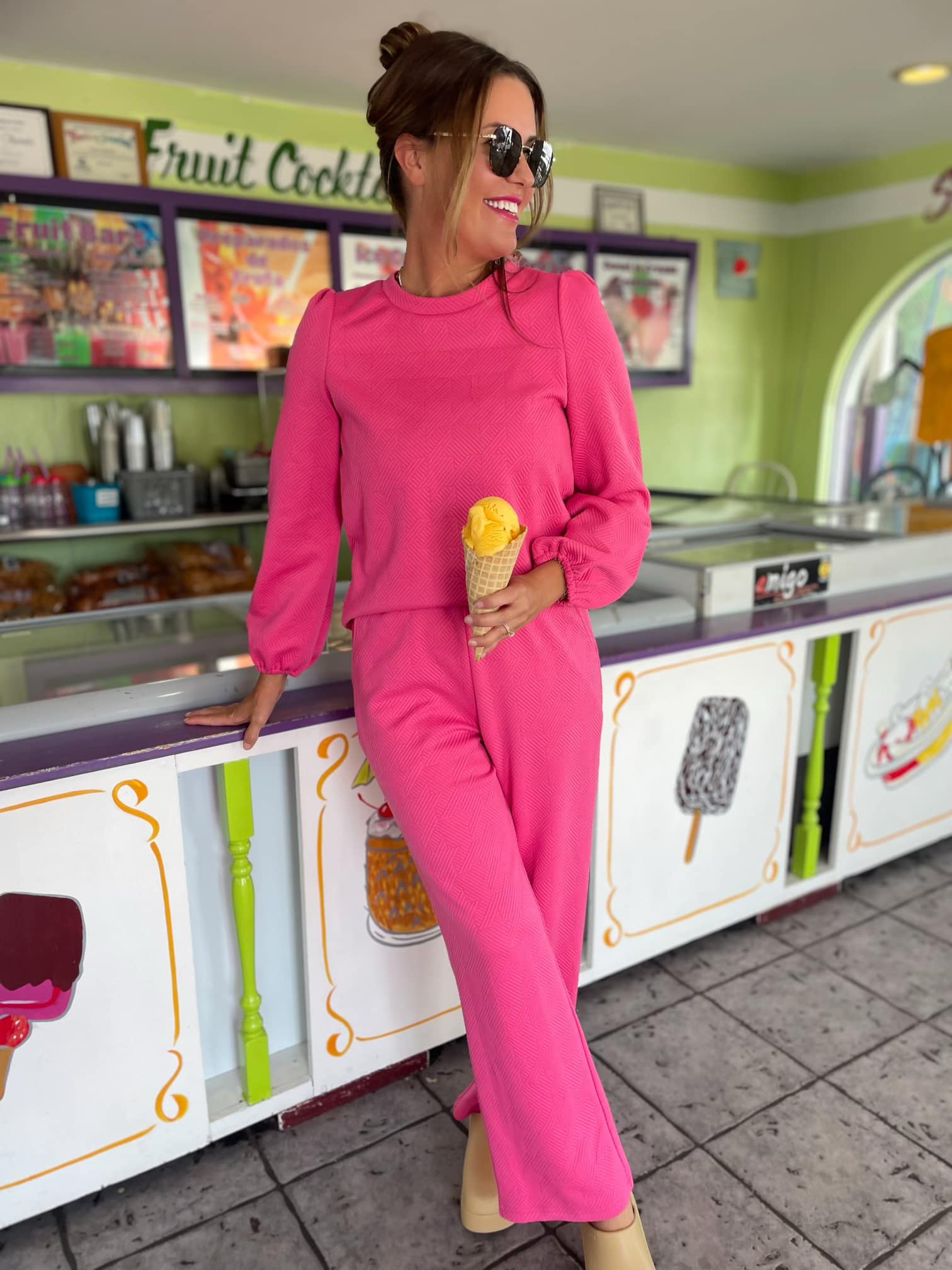 Your loungewear for fall just got a lot more fabulous with this gorgeous quilted set! Available in beige, black and pink, we love the textured fabric and the puff sleeve detail.