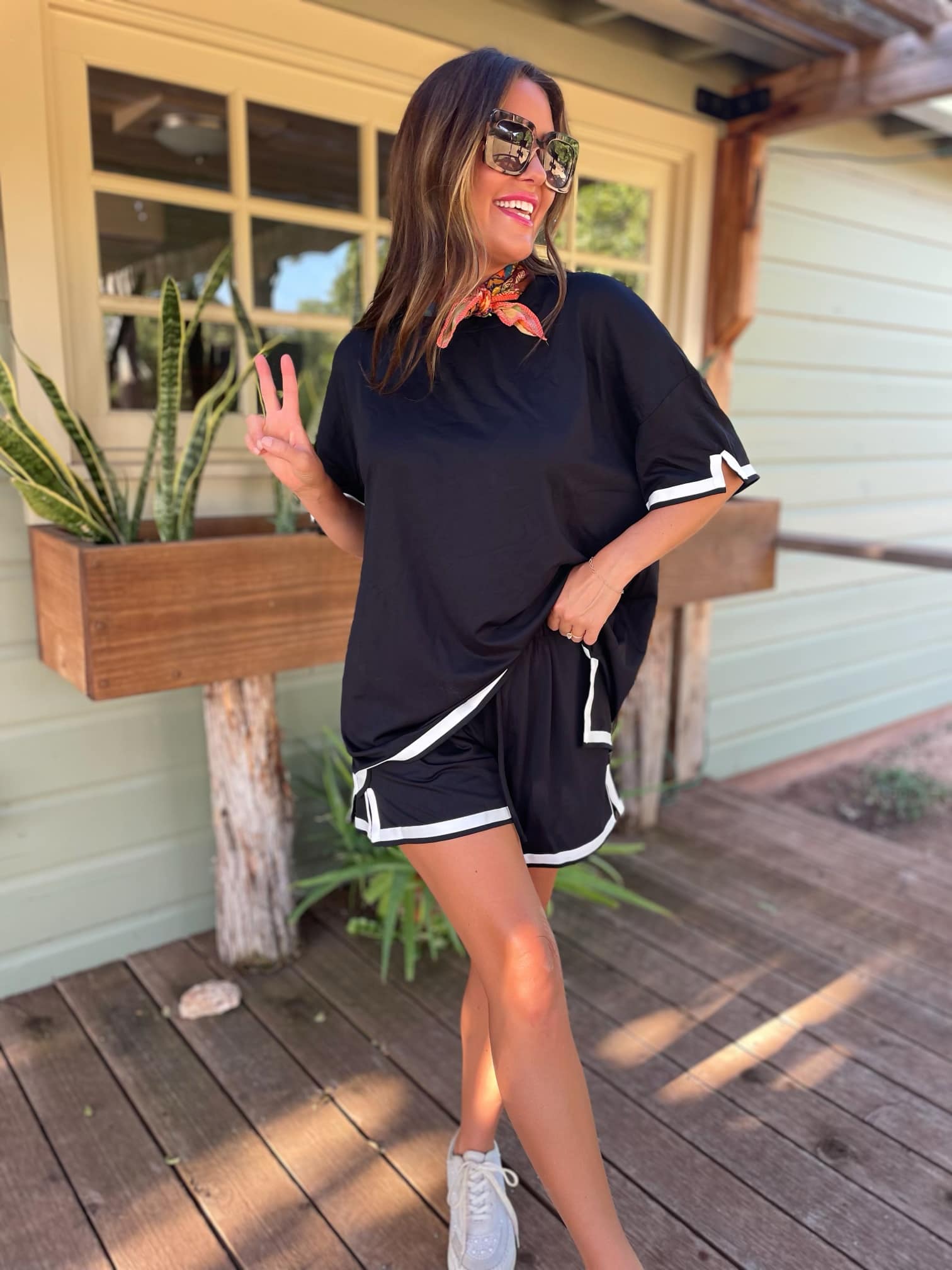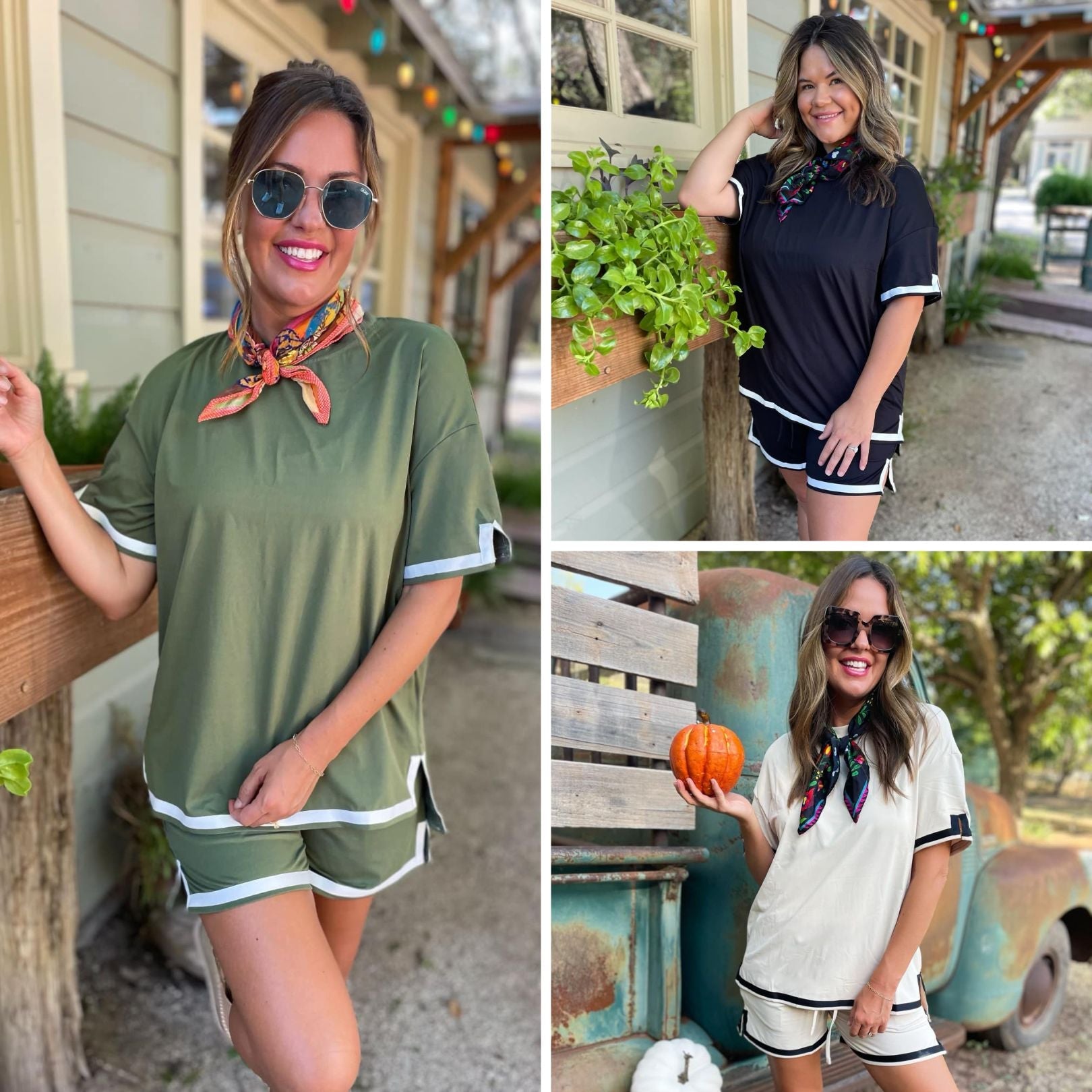 Trust us when we say this is your MUST have lounge set this season! The fabric has such a luxurious feel and the contrast detailing on the hemlines and sleeves add the perfect elevated touch. Available in ivory, olive and black!