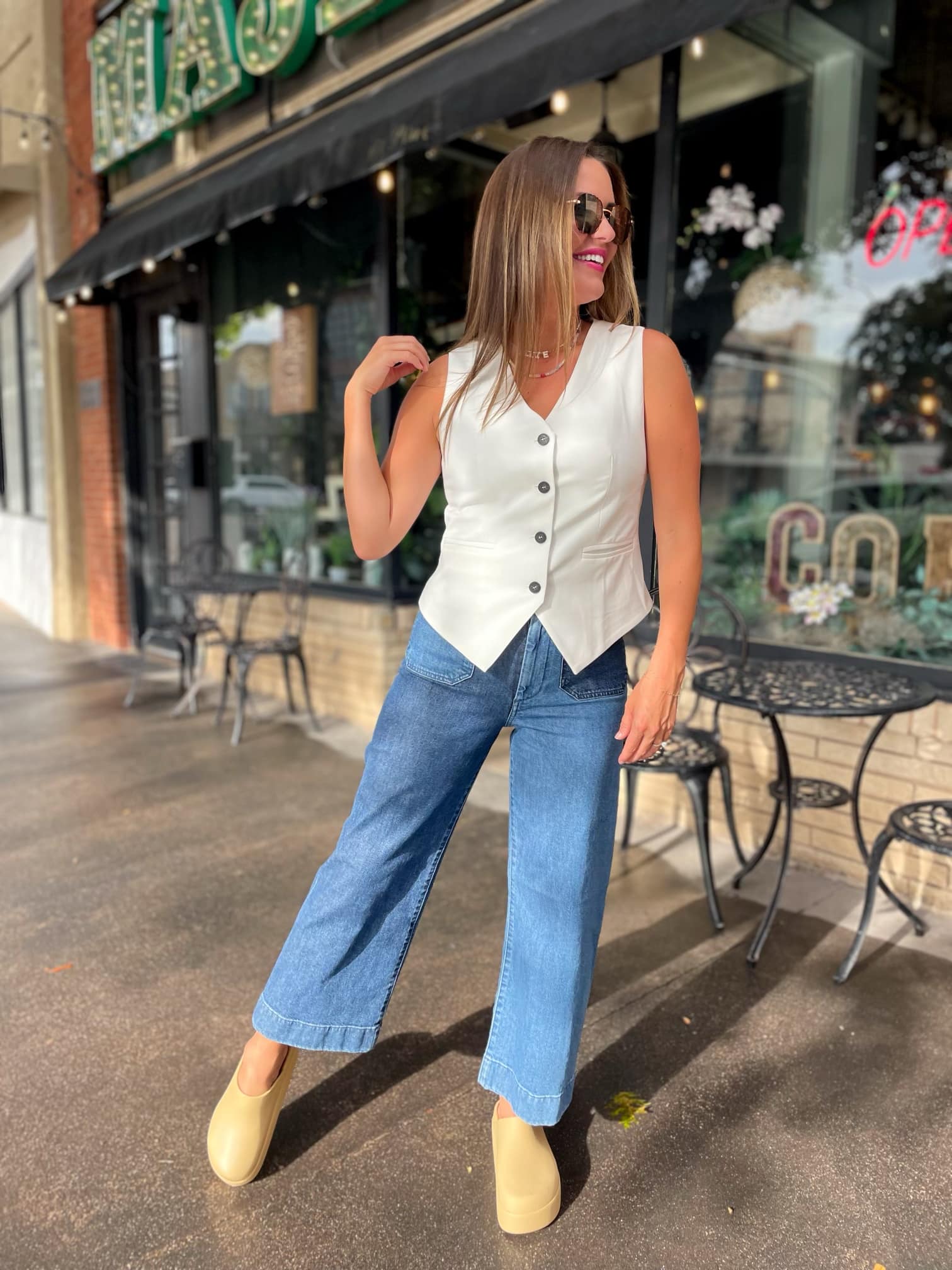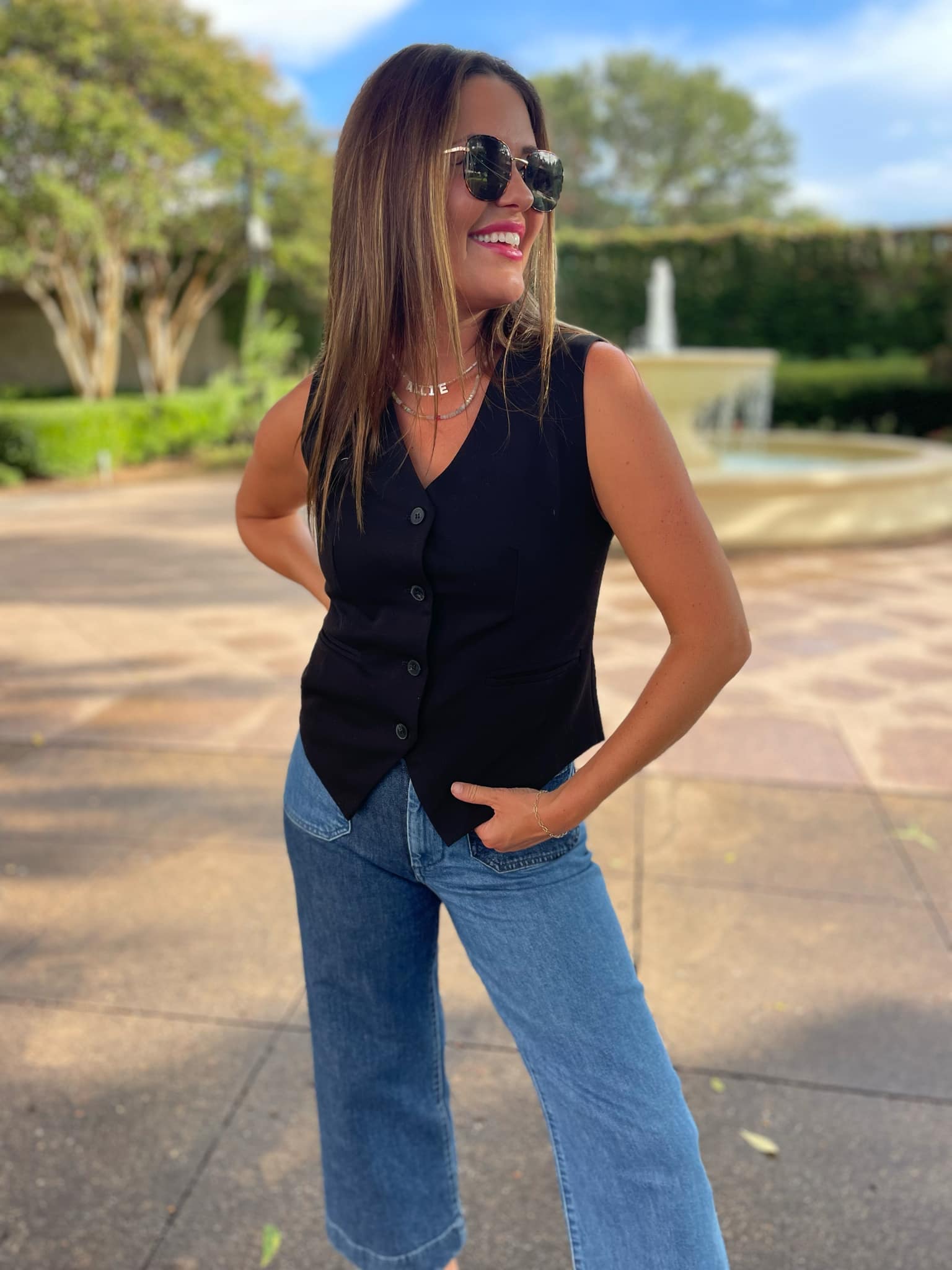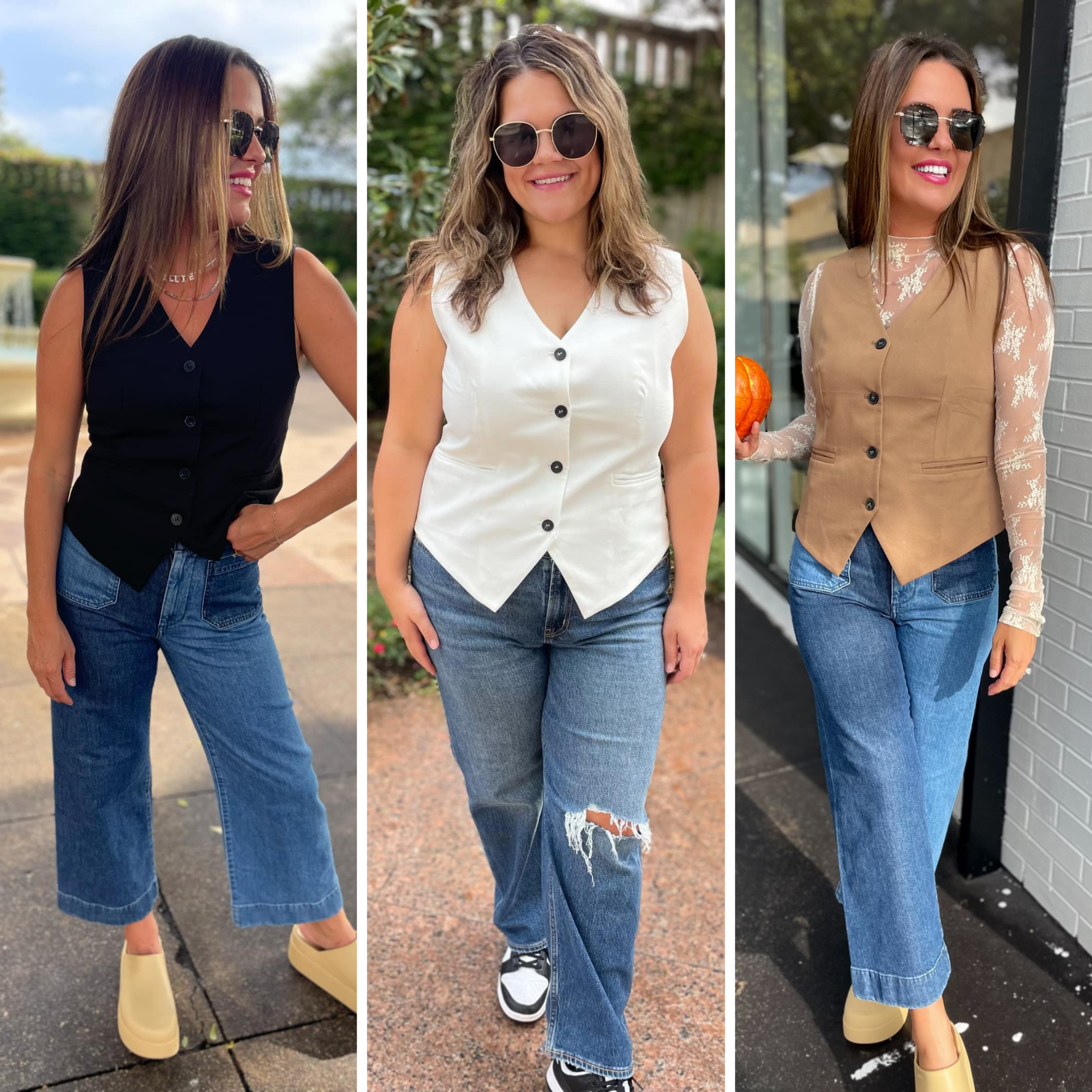 Our new tailored vests are available in three staple colors and offer tons of style and versatility! Featuring four functional buttons with slit pockets and a button cinch detail to customize your perfect fit.