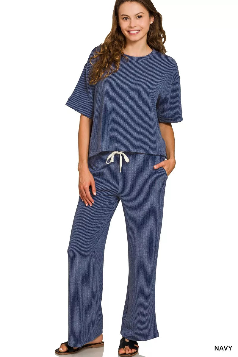 Zenana Raised Rib Short Sleeve Tee & Pants Set